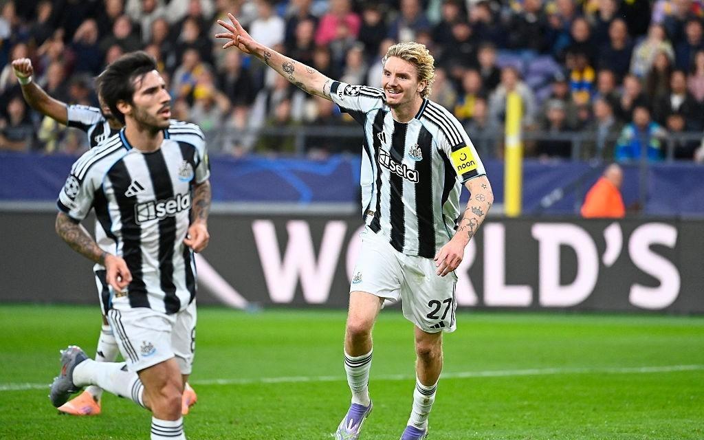 点射梅开二度,戈登成为纽卡斯尔队史第三位连续欧冠进球球员